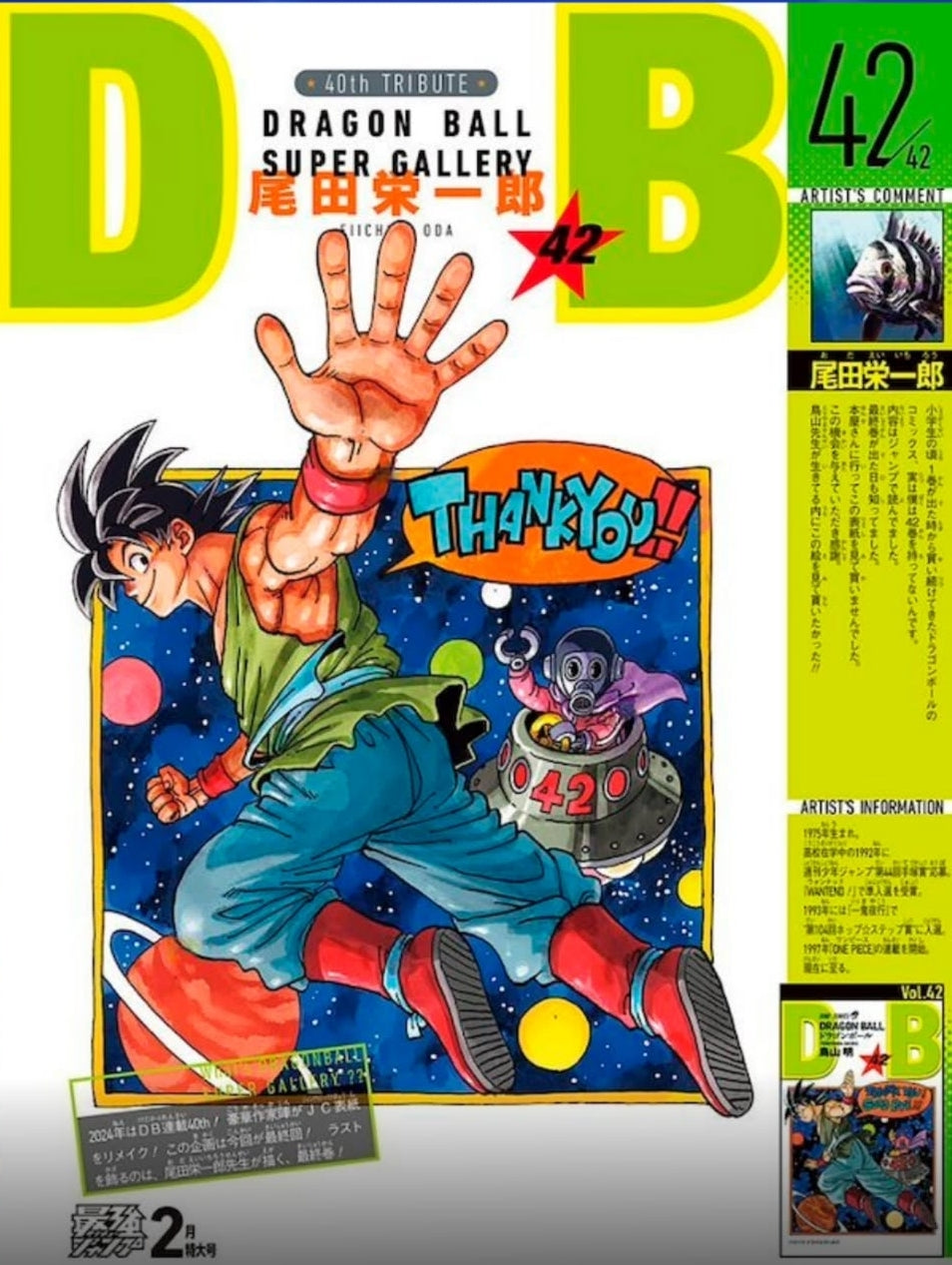 Il back del magazine è disegnato da Oda Eiichiro (ONE PIECE). Ricordiamo che il retro della rivista Saikyo Jump, ormai da più di un anno, rappresenta (mensilmente) la copertina di un volume di Dragon Ball ridisegnata da grandi mangaka, questa volta tocca al Senpai ODA!