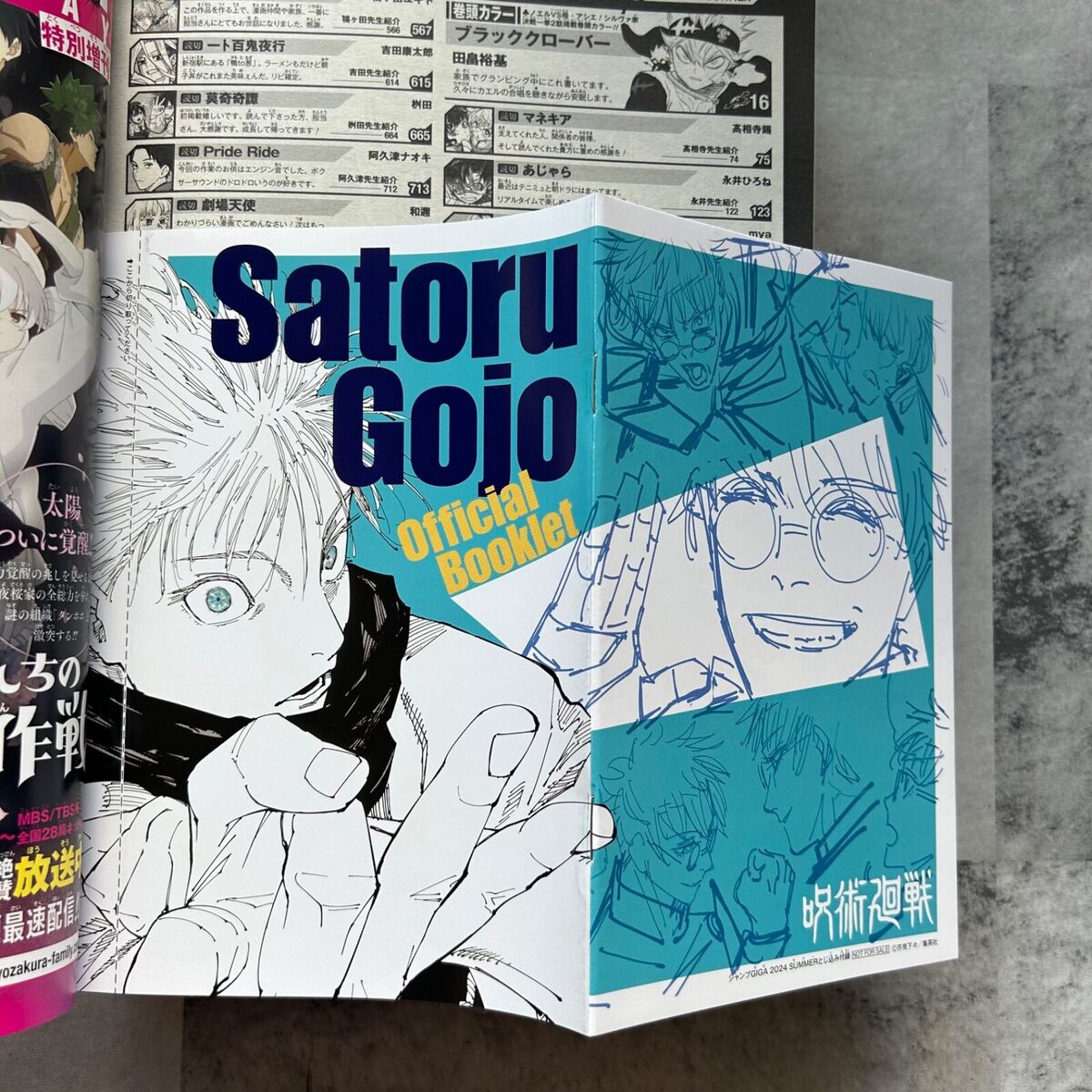 Booklet di Jujutsu Kaisen rilasciato in Giappone con il magazine GIGA SUMMER 2024. Il booklet è incentrato su Satoru Gojo.