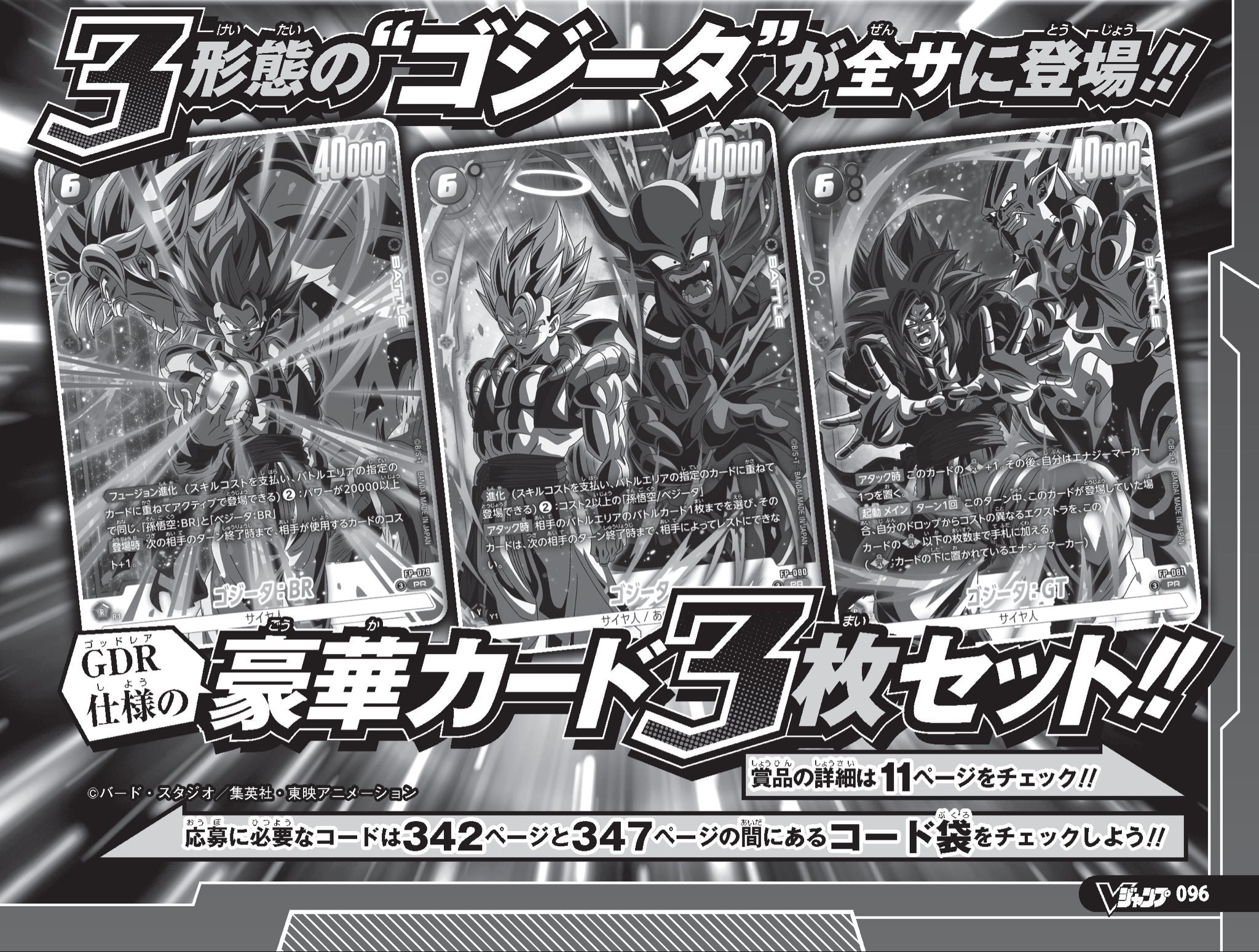 Nota bene: le 3 carte di Dragon Ball che si vedono in basso a sinistra nella copertina della rivista non sono incluse. Per la precisazione del cliente, sono le 3 carte nella foto in bianco e nero, scorrendo. La rivista le ha solo annunciate, verranno rilasciate nel mercato giapponese solamente tra mesi. Il contenuto della rivista è quello sopra elencato e non si accettano cancellazioni per motivi legati alla mancanza di queste 3 carte, dato che da fabbrica la rivista esce senza.
