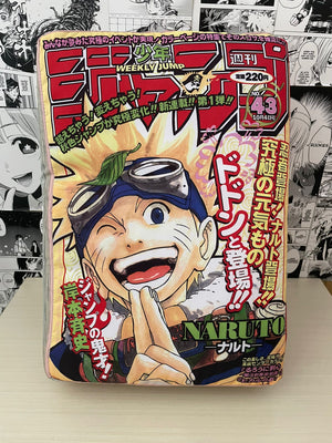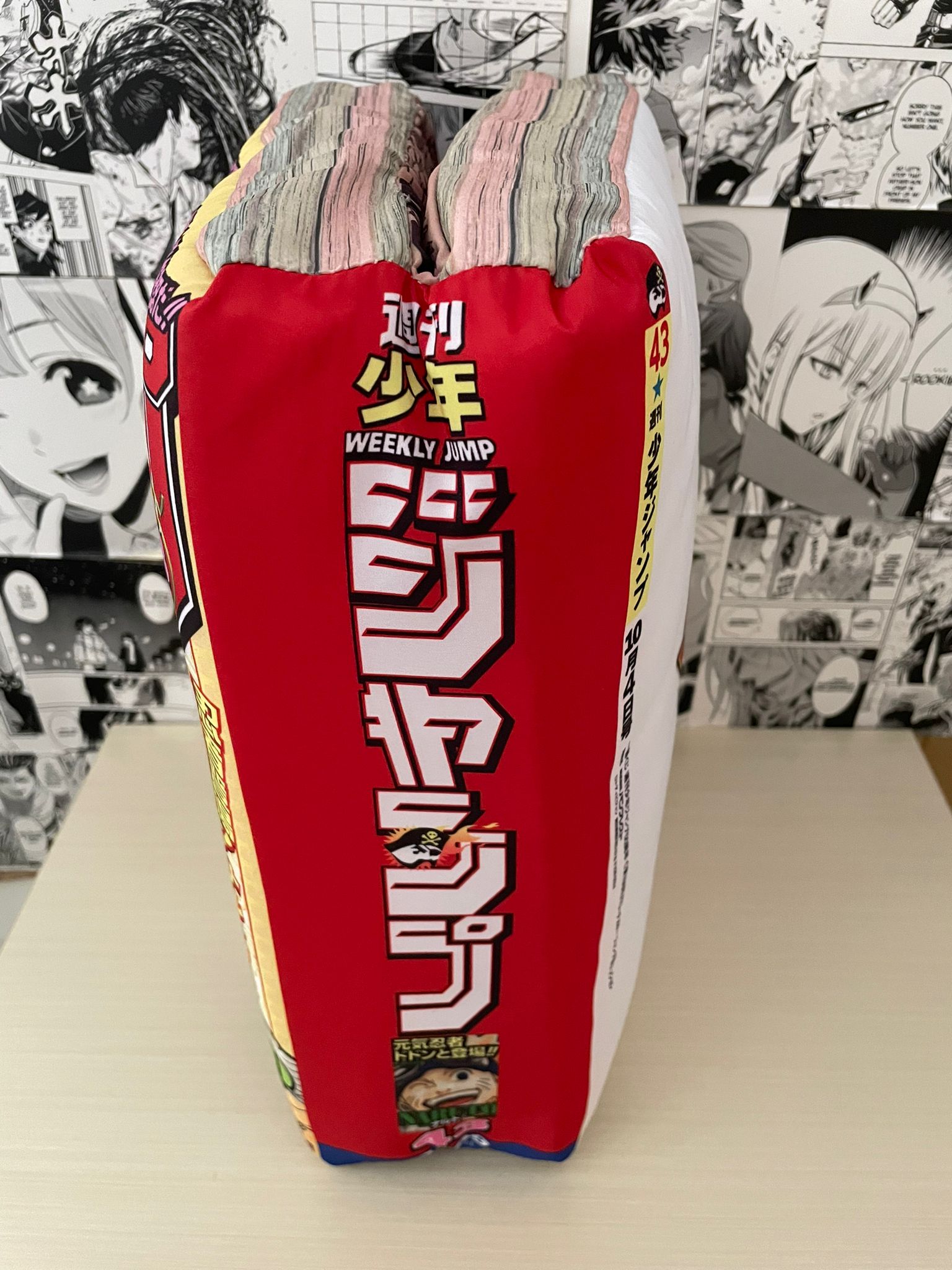 Cuscino di Naruto rilasciata per il 50esimo anniversario della rivista Weekly Shōnen Jump. Il cuscino rappresenta il weekly shonen jump con il primo capitolo di naruto e si apre a metà proprio come un libro!