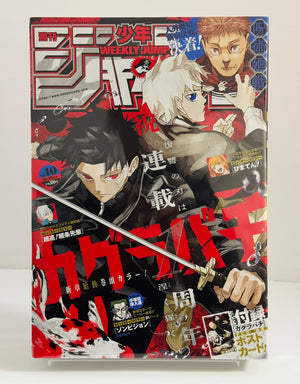 Rivista settimanale contenente gli ultimi capitoli dei manga usciti in Giappone. Il magazine contiene gli ultimi capitoli di Jujutsu Kaisen! Il manga terminerà il 30 settembre. In copertina torna Kagurabachi, per l'anniversario delluscita del primo capitolo. Investimento bomba.