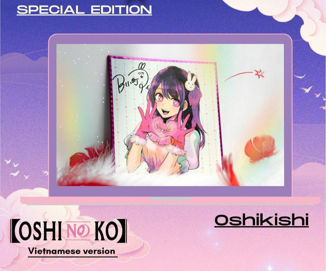 Variant cover N. 10 di Oshi No Ko vietnamita. Il volume è incluso. In allegato viene fornito anche uno shikishi e altri gadget.